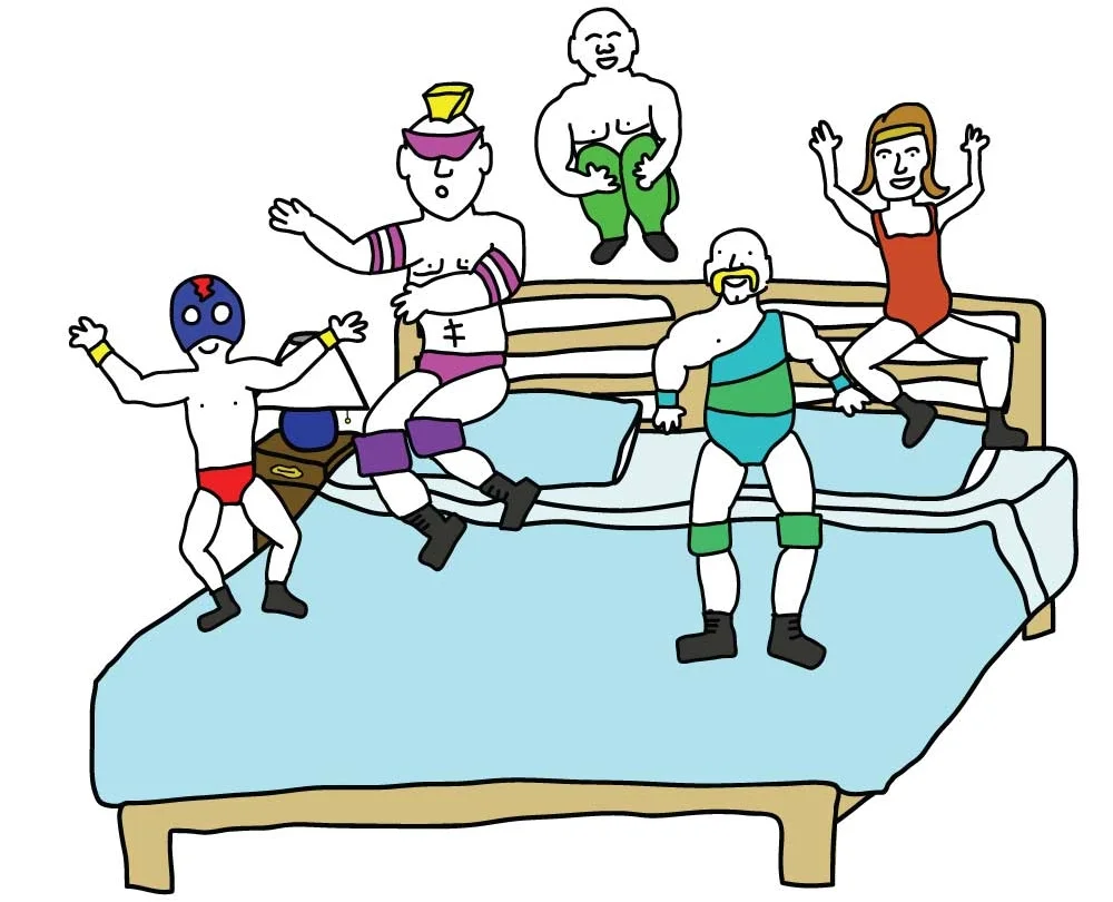 Because the only thing better than jumping on the bed is WRASSLIN' on the bed.